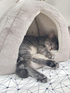 日中はいつも猫クッションの中にいますが、夜は活発になるようです。