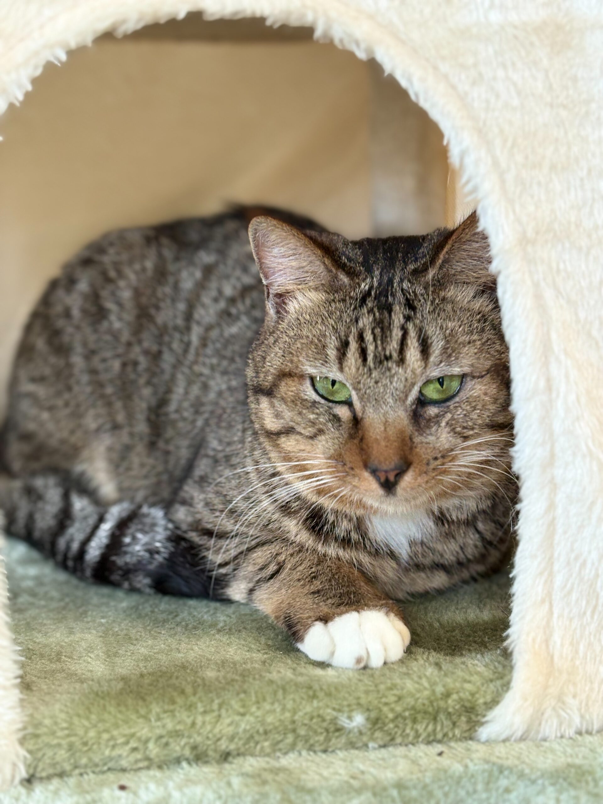 しかし、左前足のハンデを物ともせず、現在は普通の猫と同様にキャットタワーに登り、歩き、無邪気に遊んでいる。